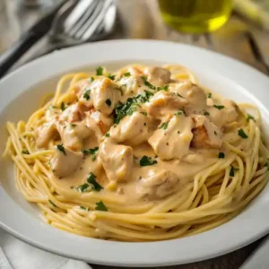 Description de cette recette: Les spaghettis crémeux au poulet, c’est bien plus qu’un simple plat de pâtes. C’est une symphonie de saveurs, une danse délicate entre la simplicité réconfortante des …