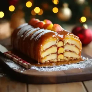 Description de cette recette: La bûche de Noël aux pommes et caramel est une réinterprétation gourmande d’un classique des fêtes. Oubliez les bûches traditionnelles, souvent lourdes et trop sucrées. Ici, …