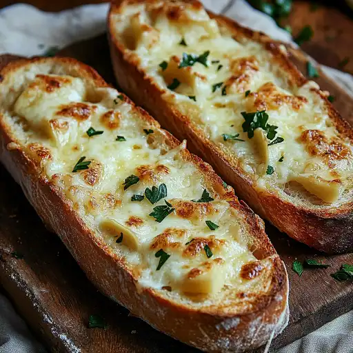 Une fois la baguette gratinée sortie du four, parsemez-la de persil frais ou de ciboulette ciselée. Cette touche de verdure apportera de la fraîcheur et de la couleur à votre plat. Coupez la baguette en morceaux et servez chaud immédiatement.