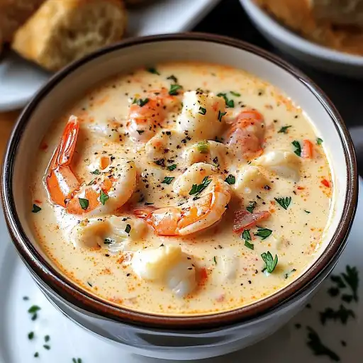 La bisque crémeuse aux fruits de mer, crabe et crevettes est un plat raffiné et savoureux qui saura ravir les papilles des amateurs de cuisine marine. Sa texture veloutée, ses arômes délicats et sa présentation élégante en font un plat idéal pour les occasions spéciales ou pour un dîner en amoureux. N’hésitez pas à personnaliser cette recette en fonction de vos goûts et des ingrédients disponibles, et laissez-vous emporter par les saveurs enivrantes de la mer. Bon appétit !