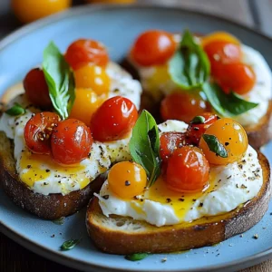 Description de cette recette: Les Toasts à la Burrata et aux Tomates Cerises Rôties sont une célébration de la simplicité et de la fraîcheur. Cette recette met en valeur des …