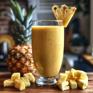 Description de cette recette:Ce smoothie Piña Colada est une boisson rafraîchissante à base d’ananas, de lait de coco, de banane et de jus d’ananas, parfaite pour se sentir en vacances …