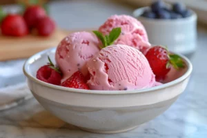 Délicieuse et crémeuse glace à la fraise maison, parfaite pour une friandise rafraîchissante lors d’une journée chaude. Pourquoi vous allez adorer cette recette Cette glace à la fraise maison regorge …