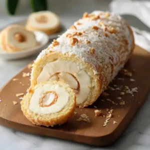 Description de cette recette: Le biscuit roulé à la noix de coco et chocolat blanc est un dessert élégant et gourmand qui combine la légèreté d’un biscuit moelleux avec l’exotisme …