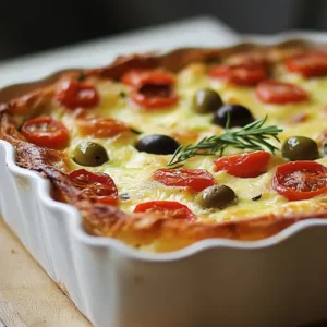 Délicieuse variante du dessert français classique, ce clafoutis salé regorge de saveurs vives de tomates cerises, d’olives saumâtres et de fromage de chèvre crémeux. Un plat simple et élégant, parfait …