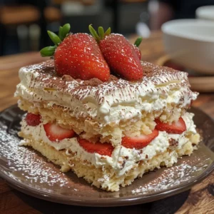Cette délicieuse recette de tiramisu présente une combinaison alléchante de fraises fraîches, de biscuits spéculoos croquants et de mascarpone riche. L’équilibre parfait des saveurs et des textures de ce dessert …