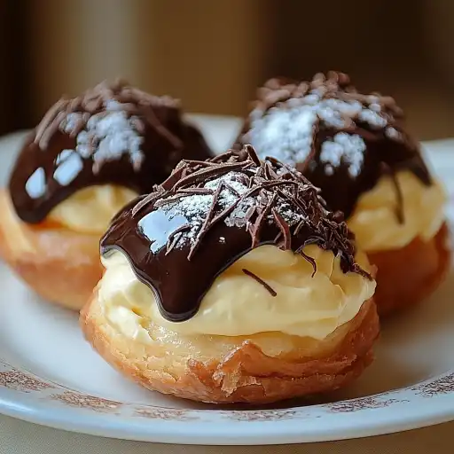 Les choux fourrés à la crème anglaise et nappés de chocolat, ou plus simplement « choux à la crème », sont une pâtisserie classique française, symbole de gourmandise et de raffinement. Cette version revisitée met l’accent sur la légèreté de la pâte à choux, l’onctuosité de la crème anglaise vanillée et la richesse du glaçage au chocolat. Chaque bouchée est une explosion de saveurs et de textures, un véritable voyage gustatif qui ravira les papilles des petits et des grands. Parfaits pour une occasion spéciale, un goûter dominical ou simplement pour se faire plaisir, ces choux à la crème feront sensation à coup sûr.