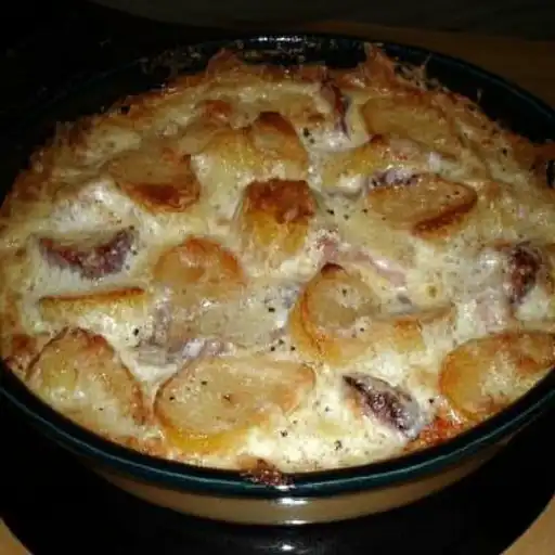- Pour un gratin encore plus gourmand, vous pouvez ajouter des lardons fumés ou des dés de jambon entre les couches de pommes de terre et de Camembert.
