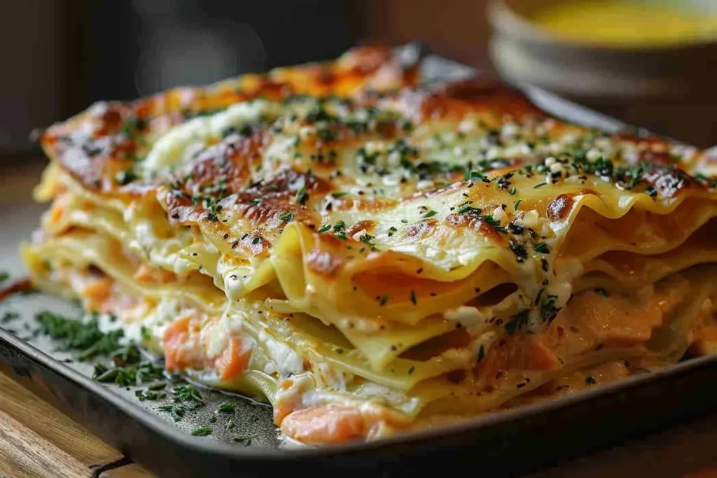 Vous allez adorer cette recette pour son mélange luxueux d’ingrédients qui élève les lasagnes traditionnelles à un niveau gastronomique. Le fromage de chèvre crémeux ajoute une riche complexité, tandis que le saumon apporte un goût unique qui se marie à merveille avec les poireaux tendres. Cette lasagne impressionnera certainement vos invités et deviendra un favori dans votre répertoire de recettes.