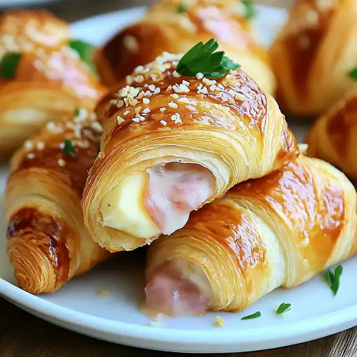 Serving Suggestions: Servez les mini croissants jambon-fromage chauds ou tièdes, accompagnés d’une salade verte fraîche et croquante. Ils sont également délicieux avec une soupe chaude ou en accompagnement d’un brunch copieux. Pour une touche festive, vous pouvez les présenter sur un plateau décoré avec des herbes fraîches et des olives.