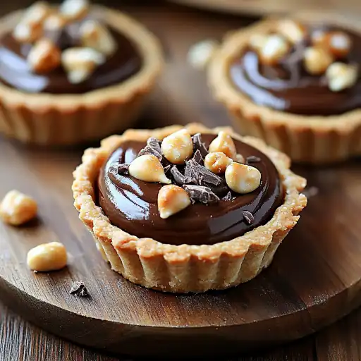 Les mini tartelettes au chocolat et noisettes sont de délicieuses bouchées gourmandes qui combinent la richesse du chocolat noir avec le croquant des noisettes. Ces petites douceurs sont parfaites pour une fin de repas élégante, un goûter raffiné ou simplement pour satisfaire une envie irrésistible de chocolat. Faciles à réaliser, elles impressionneront vos convives par leur présentation soignée et leur goût exquis. Chaque tartelette est une invitation à un voyage gustatif où la pâte sablée croustillante rencontre une ganache onctueuse et des noisettes torréfiées.