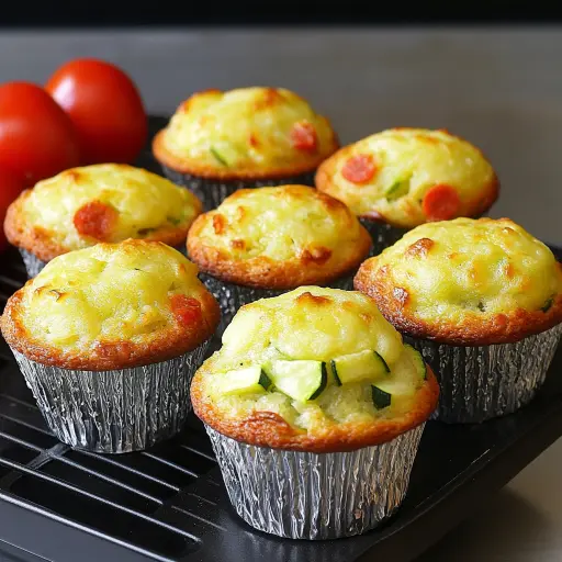 - Puis-je ajouter d’autres ingrédients à la recette ? Bien sûr ! Vous pouvez ajouter des légumes supplémentaires comme des poivrons rouges ou jaunes coupés en dés, des oignons émincés, ou des herbes fraîches comme du basilic ou de la ciboulette. N’hésitez pas à expérimenter pour créer votre propre version des muffins.
