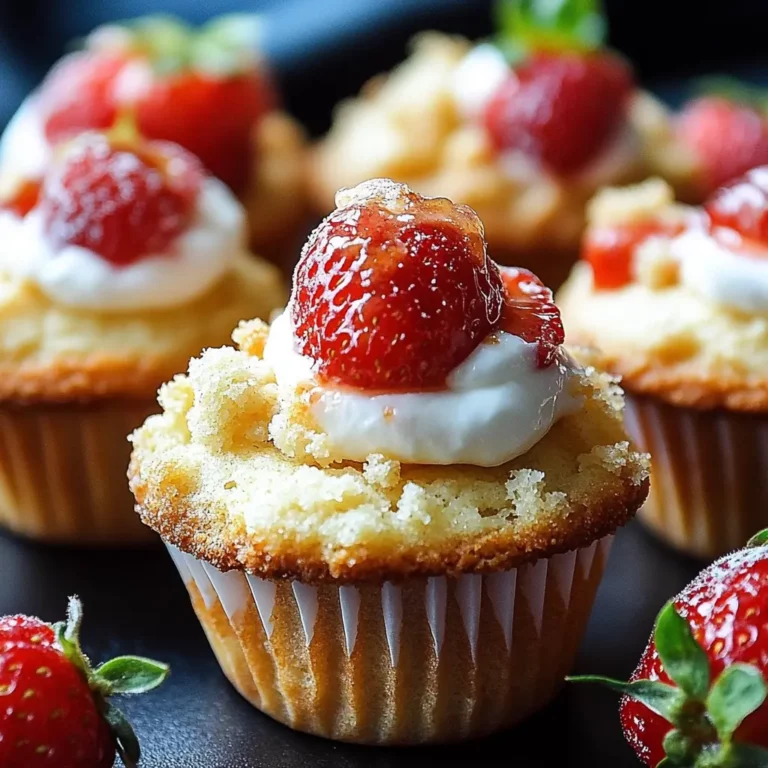 - Étape 10 : Garnir (facultatif) Une fois les muffins refroidis, vous pouvez les garnir de crème fouettée maison ou de chantilly, puis ajouter quelques fraises fraîches sur le dessus pour décorer. Vous pouvez également saupoudrer un peu de sucre glace sur les muffins pour une touche de gourmandise supplémentaire.