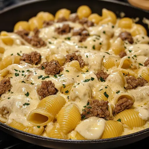 Ces pâtes coquillettes au bœuf dans une sauce crémeuse à l’ail et au parmesan sont un vrai succès assuré ! Simples mais délicieuses, elles conviennent à toutes les occasions. Bon appétit !