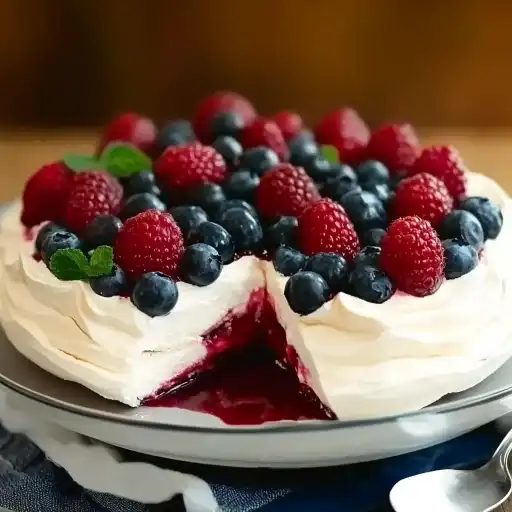 La pavlova express aux fruits rouges est une version simplifiée et rapide du dessert classique, idéale pour les envies gourmandes de dernière minute ou les repas improvisés. Elle se compose de meringues achetées en magasin, de crème chantilly et d’un mélange de fruits rouges frais. C’est un dessert léger, frais et visuellement attrayant, parfait pour toutes les occasions.