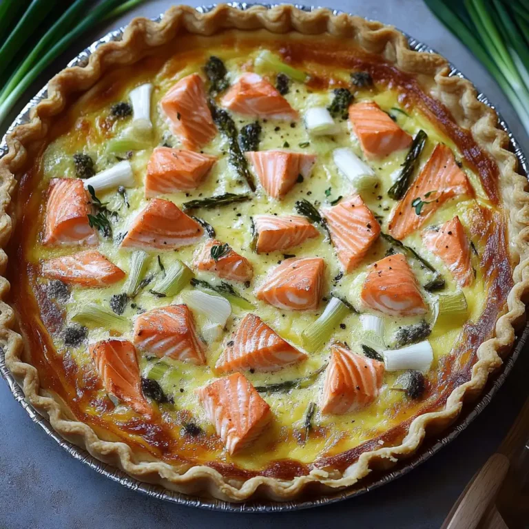 Serving Suggestions: La quiche au saumon et poireaux peut être servie chaude, tiède ou froide. Elle est délicieuse accompagnée d’une salade verte fraîche et croquante, assaisonnée d’une vinaigrette légère. Vous pouvez également la servir avec une salade composée, agrémentée de tomates cerises, de concombres, d’avocat et de quelques feuilles de basilic frais. Pour un repas plus copieux, accompagnez la quiche d’une soupe de légumes ou d’une purée de carottes.
