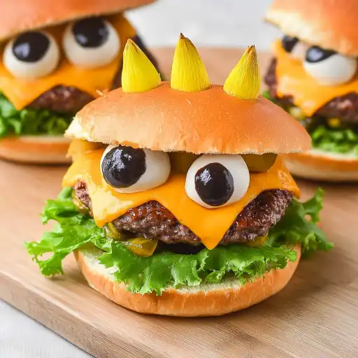Les Burgers Monstres sont une façon amusante et délicieuse de transformer un repas classique en une aventure culinaire. Parfaits pour Halloween, les fêtes d’enfants ou simplement pour surprendre votre famille, ces burgers ne manqueront pas d’impressionner. Chaque burger est assemblé avec soin pour ressembler à un petit monstre, avec des yeux globuleux, des dents pointues et une langue verte. C’est une recette que les enfants adoreront aider à préparer, et que tous apprécieront à déguster.