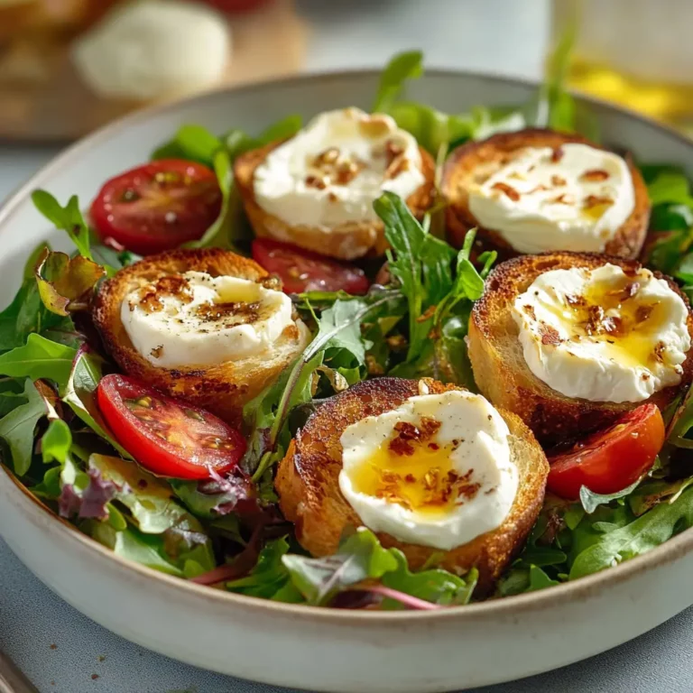 Serving Suggestions: Cette salade de chèvre chaud est parfaite servie en entrée, en plat principal pour un déjeuner léger, ou en accompagnement d’une viande grillée. Vous pouvez l’accompagner d’un verre de vin blanc sec, comme un Sancerre ou un Pouilly-Fumé, qui se mariera parfaitement avec le goût du chèvre.