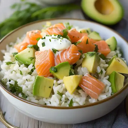 - Étape 4: Assemblage de la salade. Dans un saladier, mélangez délicatement le riz basmati refroidi, les dés d’avocat citronnés et les morceaux de saumon fumé.