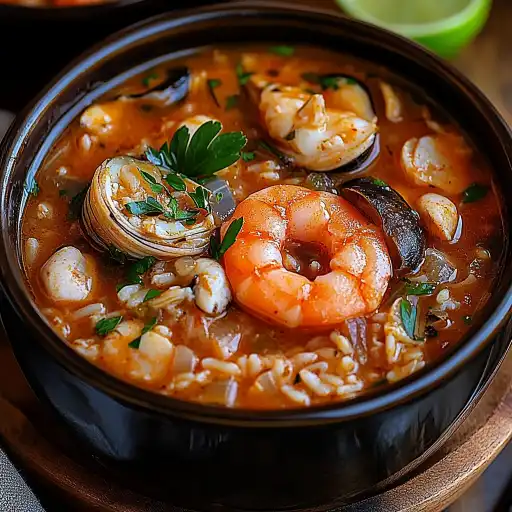 La Soupe aux Fruits de Mer et Riz, inspirée par la fameuse Jambalaya, est un plat réconfortant et savoureux qui évoque les saveurs ensoleillées de la Louisiane. Cette recette combine la richesse des fruits de mer frais avec le moelleux du riz, le tout parfumé par des épices vibrantes et des légumes frais. Chaque bouchée est une explosion de saveurs, faisant de cette soupe un plat parfait pour les soirées fraîches ou pour impressionner vos convives lors d’un dîner spécial. Elle est facile à préparer et peut être adaptée selon vos goûts et les ingrédients disponibles.