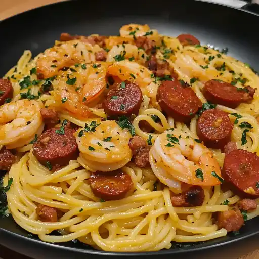 Un plat de pâtes crémeux et savoureux, parfait pour une soirée gourmande. La douceur des poivrons se marie à merveille avec le piquant du chorizo et la délicatesse des crevettes, le tout enrobé d’une sauce crémeuse au parmesan. Un véritable festival de saveurs en bouche !