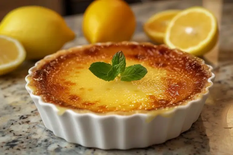 La Tarte Brûlée à la crème au citron est une délicieuse interprétation de la tarte au citron classique grâce à sa croûte caramélisée, elle ajoute une touche de sophistication, et en suivant cette recette simple et en utilisant des ingrédients de haute qualité, vous pouvez créer un dessert spectaculaire qui impressionnera les invités et éveillera leurs papilles gustatives. Pour une occasion spéciale ou tout simplement pour vous faire plaisir, ce gâteau devrait être un incontournable dans le répertoire de vos recettes. Savourez et savourez toutes les délicieuses gorgées de cette merveilleuse création culinaire.