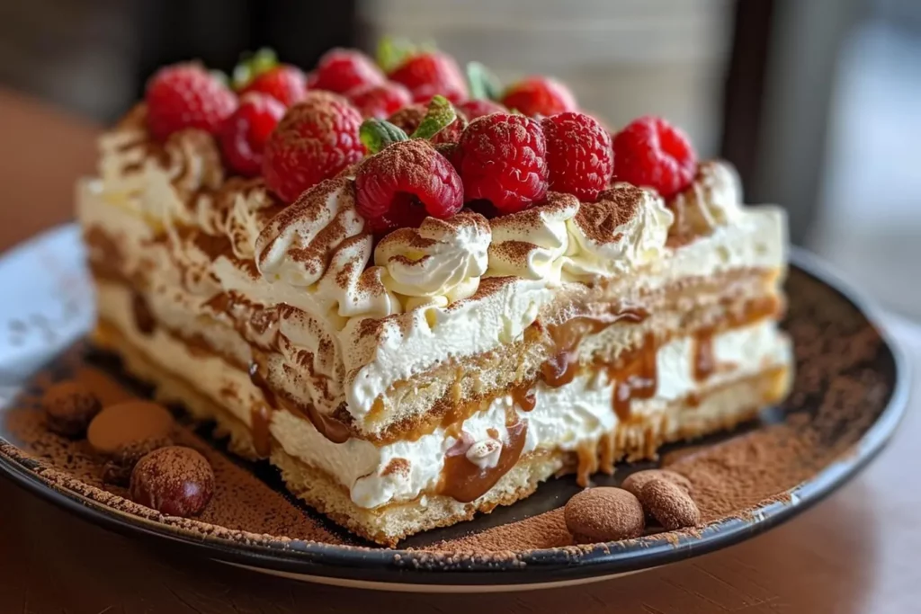R : Les restes de tiramisu peuvent être conservés au réfrigérateur jusqu’à 2 jours, mais il est préférable de le déguster frais. - Q : Puis-je ajouter des fruits différents à ce tiramisu ?